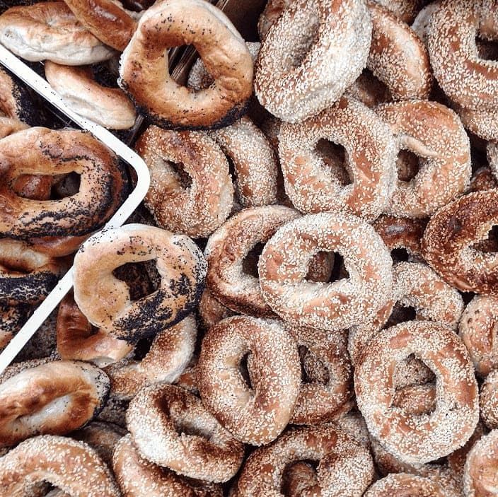 Une recette de Montréal — La succulence d’un bagel vient de plusieurs éléments : les bons ingrédients et la bonne pâte, roulée à la main, les bagels bouillirent dans de l’eau au miel, mis sur une plaque de bois, cuits dans un four à bois, tournés lorsqu’ils sont dorés et commencent à être croustillants, et retirés au bon moment. Peu importe l’endroit de production, un four peut fournir trois douzaines par heure, puisqu’un bagel parfait prend 20 minutes à cuire. « On produit lentement, mais sûrement. À l’époque les gens faisaient même la file et ne pouvaient prendre qu’une douzaine par personne, c’était la règle.” »