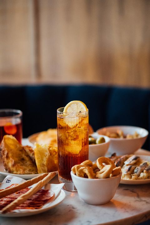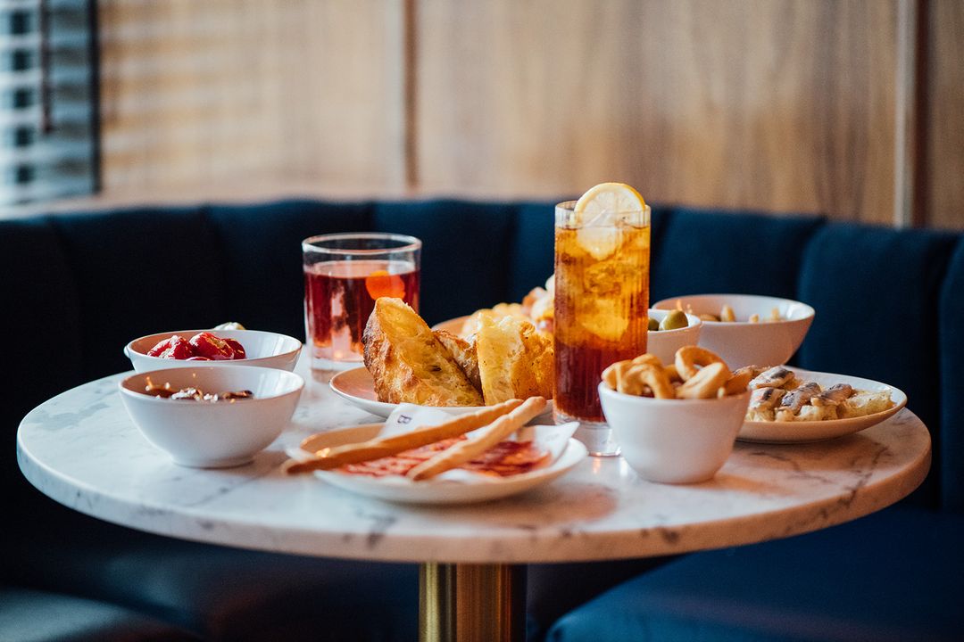 Avec un espace pouvant accueillir 65 personnes à l’intérieur et une soixantaine à l’extérieur, le design du bar a été conçu par La Chambre design co, dont on connaît le travail chez Mignon Steak et au café Bodega. Le chic décor allie le charme de l’Italie à l’élégance contemporaine. On adore tout particulièrement le plancher en carrelage à damier noir et blanc, les longues banquettes en velours bleu marine, ainsi que l’énorme bar garni de délicieuses liqueurs italiennes. On peut ainsi s’y installer très confortablement pour y déguster un savoureux cocktail en rendez-vous galant ou entre amis.