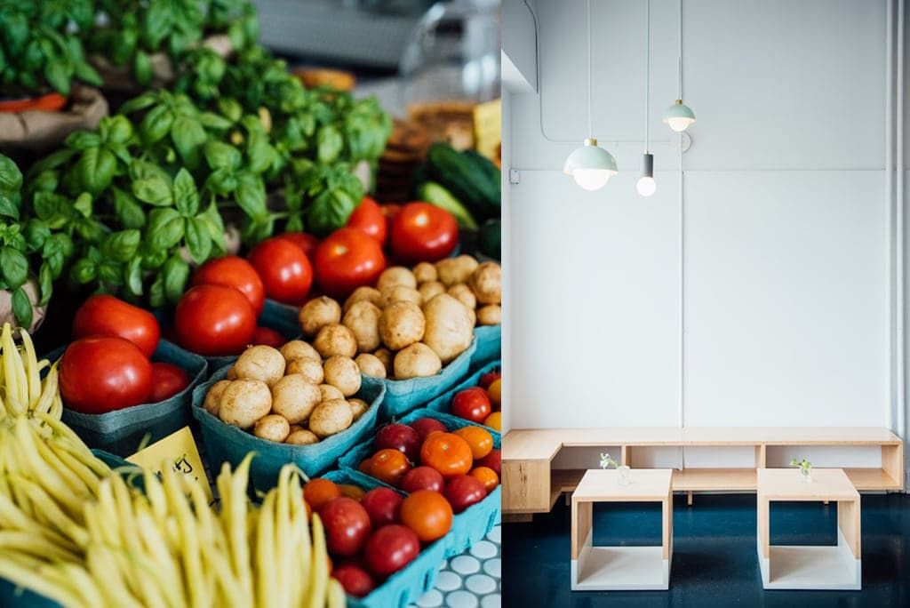 En franchissant le seuil de Butterblume Épicerie, vous vous trouverez dans un environnement familier; les proprios ont travaillé avec les mêmes professionnels pour le décor et ont gardé leur bon goût. Le local est lumineux, rehaussé de petites tuiles blanches et du fameux jaune de la maison. On y trouve un grand comptoir, une cuisine semi-ouverte, un espace frigo avec certains aliments et un petit banc pour prendre une bouchée sur le pouce. Butterblume Épicerie est à la fois fournisseur de bons plats et petite épicerie et boutique : on y trouve un joli étalage de légumes variés et frais, des herbes fraîches et petits objets soigneusement sélectionnés par les propriétaires.