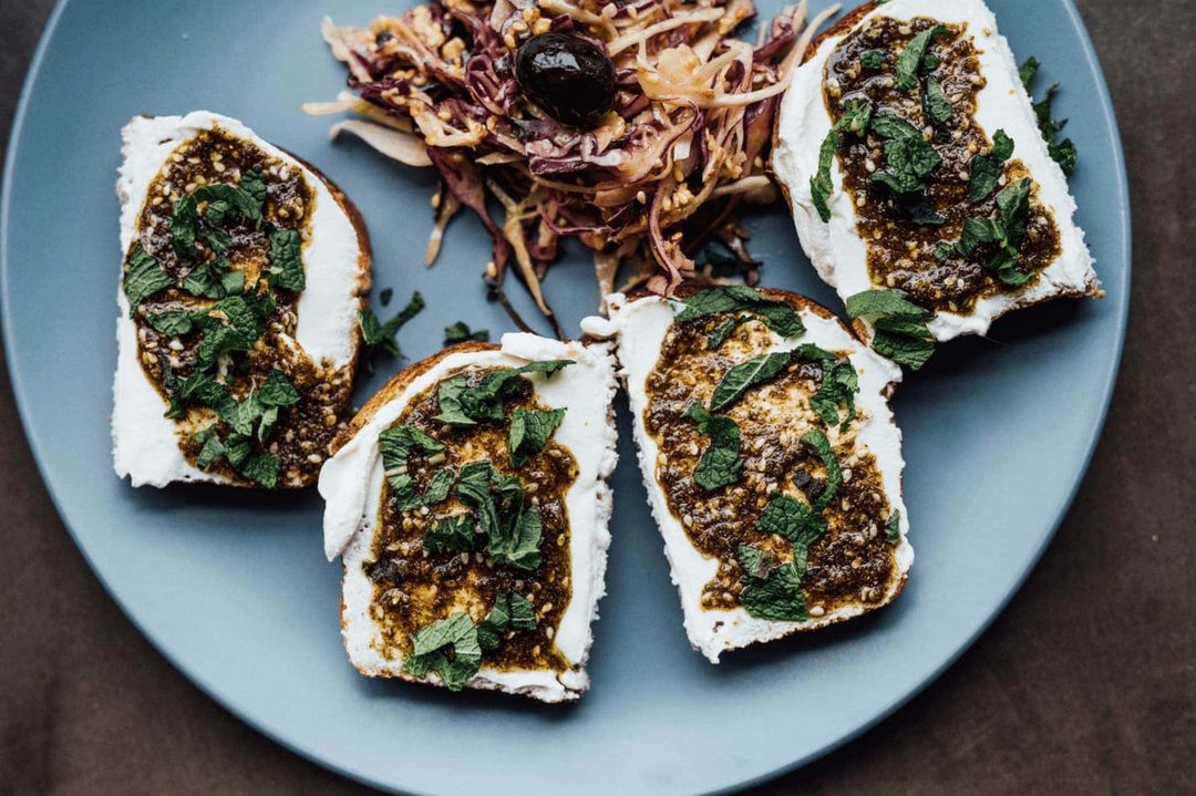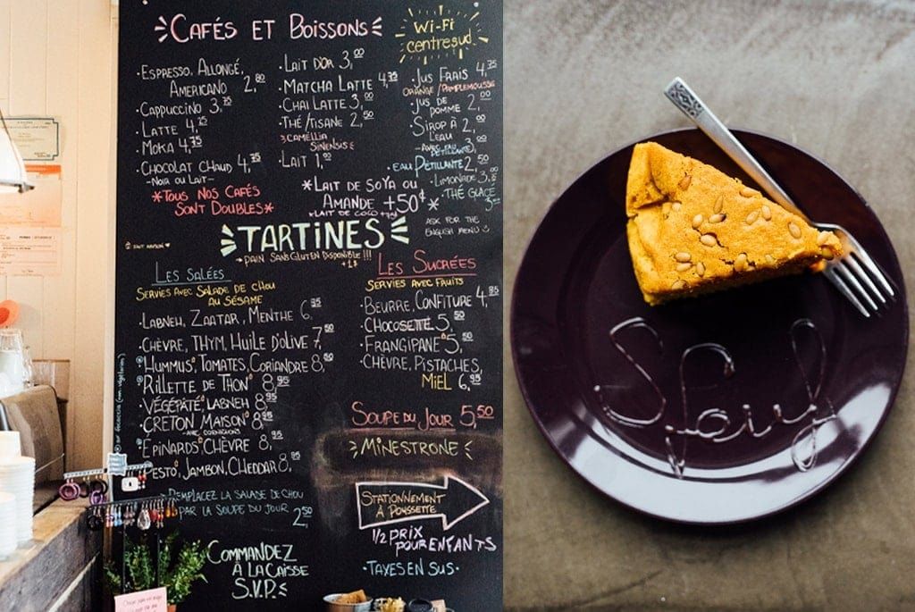 “Sfouf” est un gâteau libanais végétalien de semoule de blé, de curcuma, de noix de pins et d’eau — qui est servi comme spécialité au café Sfouf. Au menu du Sfouf, on trouve des cafés, boissons chaudes, gâteaux maison, tartines garnies salées ou sucrées entre 6 et 9 $. Le menu y est simple, mais bon! « Je n’ai pas de formation en cuisine; je voulais avoir un menu facilement modulable sans prétention, mais de qualité. L’idée des tartines était donc d’offrir quelque chose de simple et facile à changer pour accommoder les goûts des gens selon les saisons… et bien sûr, ceux des enfants. »