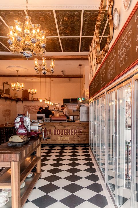 Ce qui est fantastique avec La Boucherie de Mamie, c’est qu’elle est directement connectée à ses deux adresses sœurs. Ainsi, dans le même esprit que les vins de La Cave peuvent se retrouver sur une table du Mamie, les pièces de viande à l’ardoise du restaurant pourront venir de la boucherie.