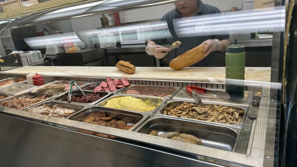 Les bánh mì emblématiques du Hung Phat présentent divers éléments qui contribuent à leur statut légendaire : un aioli et des légumes marinés maison, un pain frais et croustillant et une variété de protéines au choix (bœuf, poulet, tofu, porc, charcuteries vietnamiennes et bien d’autres). L’assemblage de ces ingrédients forme un sandwich parfait à la saveur addictive, ce qui justifie sans conteste leur place dans notre liste des meilleurs sandwichs de Montréal.