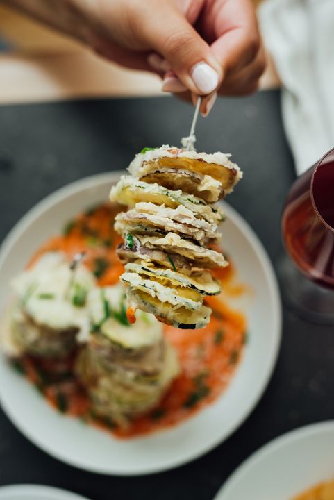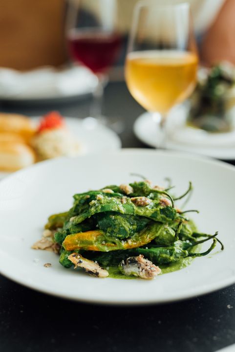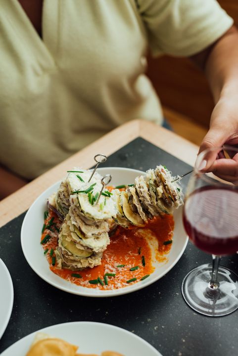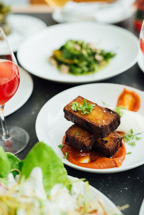 On crush sur la galette de pommes de terre (qui ressemble drôlement à un mille-feuille) servie avec ketchup maison et mascarpone, les shishito au chimichurri avec sardines millésimées Pollastrini di Anzo, les rillettes d’omble chevalier avec crème citron et gnocco fritto, le smash burger aux oignons caramélisés et aioli giardiniera… Finalement, on aime pas mal tout. Bravo, Josh!