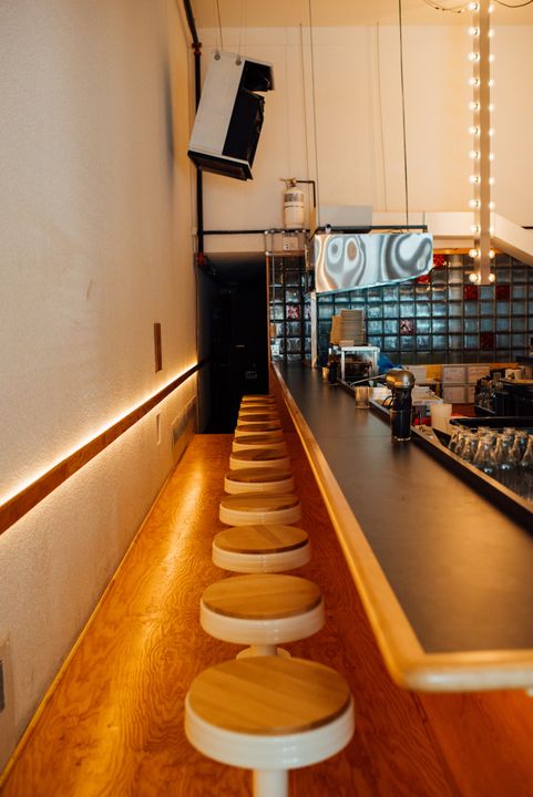 En entrant au Système, on fait face à un grand bar central, qui cache aussi une petite cuisine. Le décor est épuré, mais réfléchi. Immédiatement, nos yeux sont attirées vers les luminaires qui surplombent le bar, inspirés des colonnes de lumière du légendaire Studio 54 et réalisés par Ted Stafford. Pour l’anecdote, Sebastian Cowan (Arbutus Records, n10.as et Sounds Of Beaubien Ouest), l’un des copropriétaires du bar, en a eu l’idée en visionnant un documentaire sur le mythique club new-yorkais.