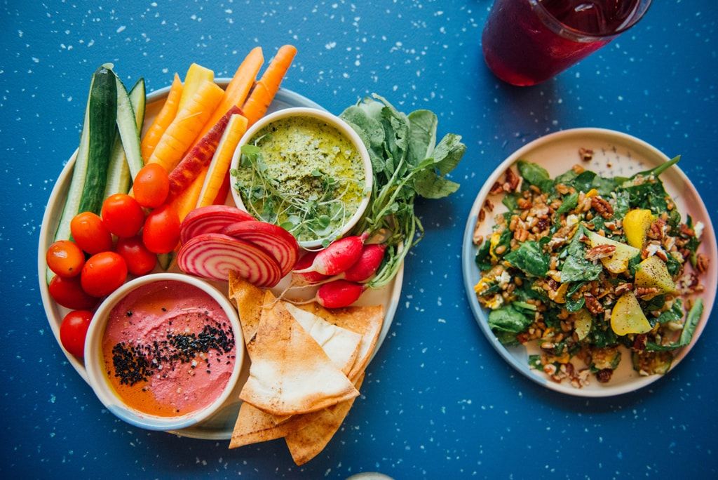 Le menu du café est conçu en collaboration avec Christelle Tanielian, blogueuse et auteure de son propre livre de recettes. Sarah cherchait à offrir une cuisine fraîche, cuisine de marché sans prétention et de saison, profitant pleinement de sa proximité géographique avec le marché Jean-Talon. Le menu grossira et se concrétisera tranquillement, s’arrêtant à cinq ou six plats. L’assiette de crudités à partager est une généreuse assiette pour deux, accompagnée de deux variétés de très bons houmous maison — l’assiette est également disponible en portion individuelle. Les biscuits sont faits maison et vont parfaitement avec les originales boissons chaudes de l’établissement — tel l’excellent latte au matcha — préparées par la barista en chef Elsa Lavoie. Les grains ici utilisés viennent de l’entreprise de torréfaction locale ZAB. « C’était très important pour moi de travailler avec un torréfacteur montréalais, » précise Elsa. En plus de la sélection de biscuits, Les Faiseurs se procure ses pâtisseries et viennoiseries auprès d’une autre entreprise montréalaise : Croissant Croissant. Les Faiseurs réussit à atteindre ses objectifs en servant des assiettes légères et de saison, idéales pour combler tous les appétits.