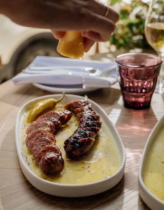 Alors, qu’est-ce qu’on y mange ? L’accent est vraiment mis sur les plats à partager. Vous retrouverez chez MÁTI des assiettes copieuses et savoureuses d’inspiration grecque. Les plats sont simples, mais très bien exécutés. Ne manquez surtout pas les trempettes accompagnées de leur pain pita grillé fait maison pour débuter votre repas. Nous avons particulièrement aimé la salade de melon d’eau servie avec feta, pistaches et miel. Le loukaniko (saucisse grillée) nous a agréablement surpris, mais la star du repas, c’est vraiment l’agneau braisé 24h avec sa réduction – tout simplement décadent! Côté prix, on peut s’en sortir avec une addition raisonnable si les plats sont partagés à plusieurs, mais cela peut grimper assez rapidement.