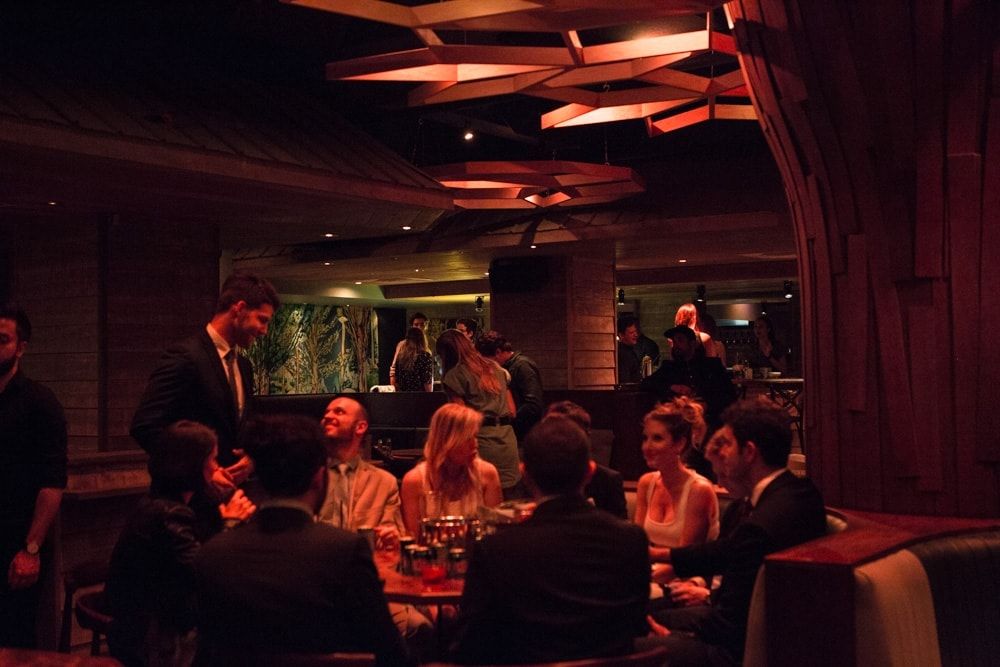 Le Soubois se trouve dans le lieu de prédilection, rue Maisonneuve, où le Peel Pub et le Copacabana se sont succédés respectivement 15 années de suite à proliférer la fête. Lorsque vous arrivez devant le Soubois, une porte en vitre (à venir) vous mène à l’entrée du sous-bois; « une projection d’une fenêtre avec la vue d’un chalet sera visible de l’extérieur. Je veux vraiment que les gens sentent qu’ils entrent dans une cabane en forêt. » Vous descendez les escaliers et arrivez à la réception d’un salon. Puis, vous entrez dans le « sous-bois ». Celui-ci est composé de cinq arbres et trois maisons. Une maison avec un bar à votre droite; celle-ci cache quelque chose. Une maison en face de vous qui loge la cuisine et qui est également une « véranda fermée » puisqu’elle peut être séparée du reste du bar avec des rideaux qui bloquent le son. La troisième maison est au fond à votre gauche. Elle abrite l’Orangerie, une salle privée; c’est la maison « disco ». Il y a aussi les murales de l’artiste Gawd qui représentent une forêt enchantée. Vous pouvez y retrouver les champignons du menu cachés un peu partout (rires). Sans blague, cette murale est absolument magnifique. Finalement, le cellier; « c’est une installation d’art. Je ne bois pas alors j’étais vraiment tanné de voir des bouteilles. On a donc construit un cube de verre, qui sera rempli de fumée. Avec Adam Hummel (de Moment Factory), on a créé des projections d’aurores boréales qui changent selon l’humeur de la salle. Quand quelqu’un achète une bouteille, un gérant ou une serveuse le signale et la fumée est aspirée par le trou du décagone en quelques dizaines de secondes. » Ouf. (rires) Je vous l’avais dit; une jolie folie de la nuit. Notez bien aussi que derrière la simple bibliothèque du salon et la première maison se cache un Speakeasy (!!!).