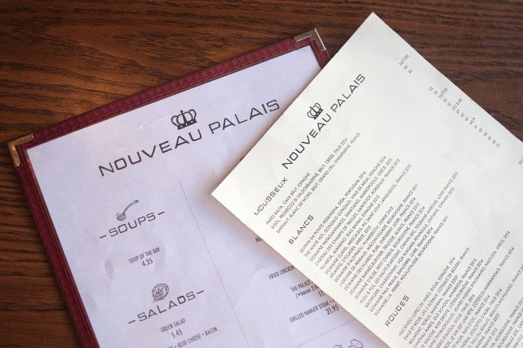 La carte des vins du Nouveau Palais est pensée par Jacques; assez courte, on y retrouve de bons vins au prix des plus doux, un mélange d’importations privées et de vins de la SAQ. Pour la carte des cocktails, c’est aussi lui qui l’a pensée : beaucoup de classiques et quelques recettes maison.