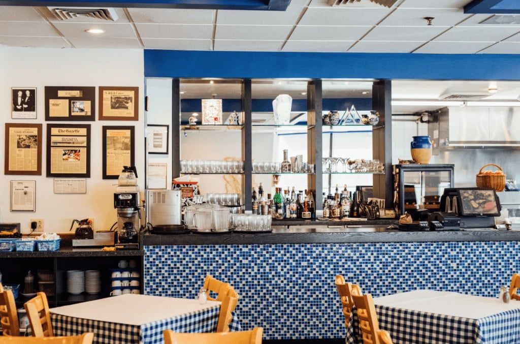 On vient ici pour manger du bon grec dans une atmosphère très décontractée! C’est monsieur Georges, qui en cuisines, prépare les assiettes. Les assiettes sont copieuses, les goûts exotiques et les cuissons parfaites. Les spécialités de la maison? Le poulet grillé, qui a mis le restaurant sur la map! On vient aussi pour les salades grecques, les zucchinis frits, la pieuvre, les poissons grillés et les côtelettes d’agneau. Les entrées sont entre 6 $ et 21,95 $ (pour un plateau de pikilia). Les plats principaux sont entre 13,50 $ et 35,95 $. On trouve aussi des assiettes de souvlaki et pitas de souvlakis entre 4,50 $ et 19,95 $. Pour le midi, la maison offre des spéciaux d’assiettes bien garnies de 11 h à 3 h 30 allant de 10,50 $ à 22,50 $; merci pour l’invitation. Nos coups de cœur vont au poulet grillé, aux zucchinis et à la pieuvre — le restaurant fait partie de notre liste de meilleurs restaurants grecs de Montréal. À boire, la maison propose une carte de vins principalement de la Grèce; on peut également y boire des Martinis et de la sangria.