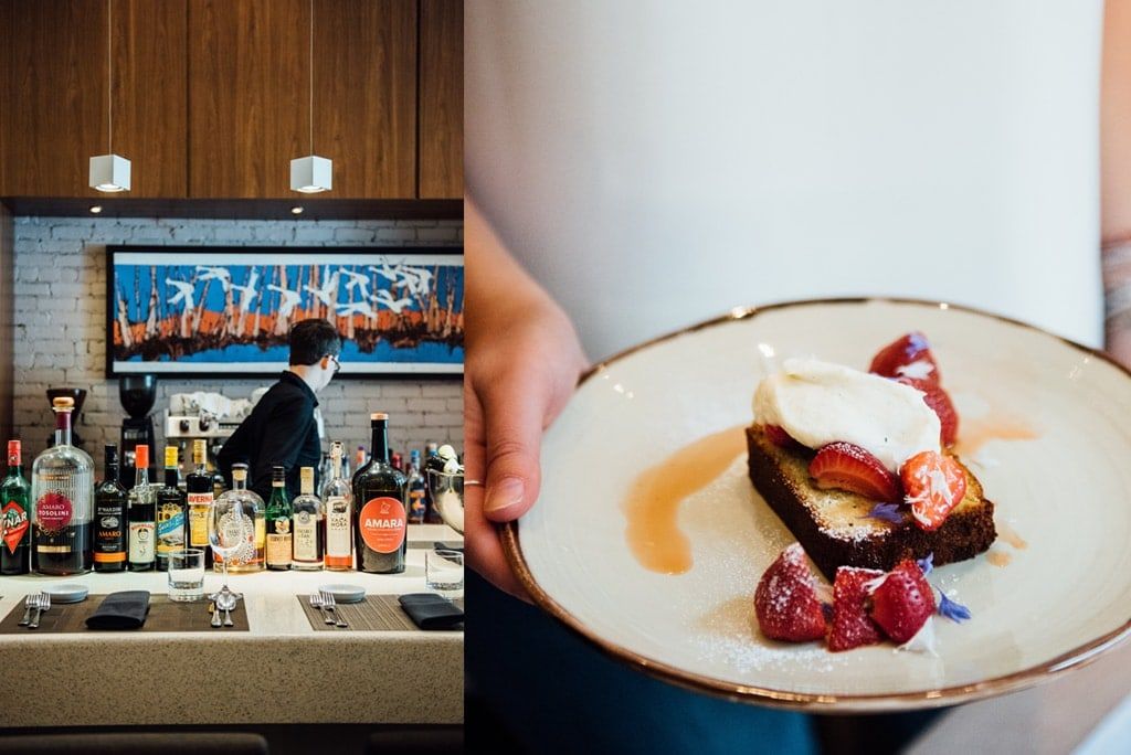 Au menu, on retrouve la grâce italienne. Graziella Battista est effectivement connue pour la finesse de ses assiettes. « La notion de partage et de plaisir est aussi au cœur de notre démarche. » La carte propose quelques Antipasti, Primi, Secondi et Dolci. Le menu du midi (28 $ par personne) change toutes les semaines. Le menu du soir change selon les saisons et les arrivages. Le seul item qui reste depuis l’ouverture est l’Ossobucco. « Ça fait 20 ans que je le fais, beaucoup de gens viennent spécifiquement pour ce plat. » Ici, tout est fait maison : pâtes et sauces. Les seules choses qui viennent de l’extérieur sont les fromages — qui sont d’appellation italienne ou québécoise — et la charcuterie qui vient d’Italie. La viande et les poissons utilisés proviennent principalement du Québec, et les légumes sont aussi le plus locaux possible.