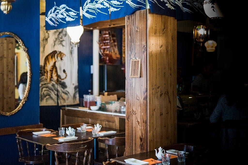 Un peu par hasard, il trouve un local sur la rue Duluth, qui sans les travaux, est une rue de restaurants piétonne très vivante durant l’été et juste à côté du Mile-End, en plein Plateau Mont-Royal. Deux jours plus tard, il signe un bail. Avec son père et son oncle, il refait le restaurant. « Je souhaitais créer une extension de ma personnalité, de Montréal, des différentes cultures, et de mes voyages ! La moitié de la décoration vient de chez moi. J’ai tout mis dans mon resto, les murs de chez moi étaient complètement vides quand j’ai ouvert. » Il y a un mélange de tout qui forme une unité intéressante : du neuf, du vieux, des styles différents, le petit restaurant de 25 places est plutôt charmant.
