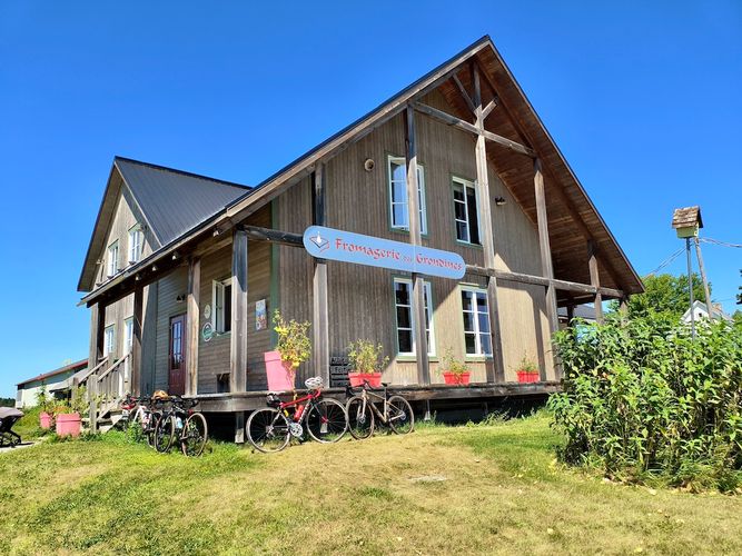 La Fromagerie des Grondines crafts flavorful cheeses made exclusively from raw, organic whole milk. The milk comes from their own herd of Brown Swiss cows, raised with care, gentleness, and respect. In summer, the milk takes on the aroma of fresh pastures, while in winter it gains richness from dry hay. The fromagerie also uses sheep and goat milk from Ferme Mafix, located just 3 km away. Here, flavors are authentic and bold, and cheesemaking is a well-mastered art. This is also a great stop for a refreshing break, with local cold drinks such as kombucha and original flavors like sea buckthorn or spruce needle. You’ll even find artisanal chocolate — perfect for a quick energy boost. It’s a gourmet pause where you can stock up on delicious treats to take with you. 🚴🏽♂️: Picnic tables under a large shelter make it easy to take a break while enjoying the pastoral scenery.