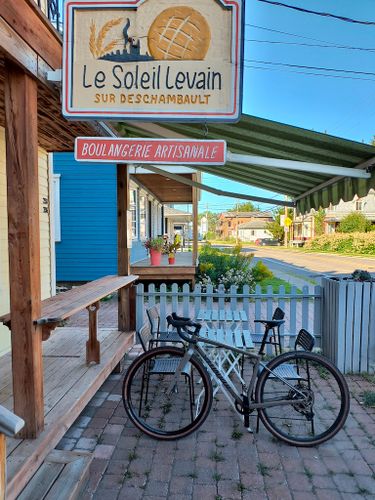 Located in Deschambault, Le Soleil Levain is a charming artisanal bakery that works exclusively with Quebec flours, without added sugar or fat. Even before stepping inside, the smell of freshly baked bread awakens every appetite. It’s the kind of place where you stop for a quick coffee or take your time enjoying a bite on the terrace before getting back on the road. Alongside classic baguettes and sourdough loaves, you’ll find specialty breads — walnut and hazelnut, onion and poppy seed, cheese and chive — as well as sweet treats like the chocolate–orange loaf. The pastries — almond cakes, apple turnovers, croissants, and pains au chocolat — are simply irresistible. From 11 a.m. to 4 p.m., a selection of ready-to-eat options rounds out the offerings. 🚴🏽♂️: Free parking is available at Parc municipal de Deschambault. From there, it’s an easy ride or walk to the three previously mentioned stops as well as the public market. Public washrooms are available on rue de la Salle, inside the P. Benoit building. As you leave Deschambault, Chemin du Roy offers stunning views of the St. Lawrence River.