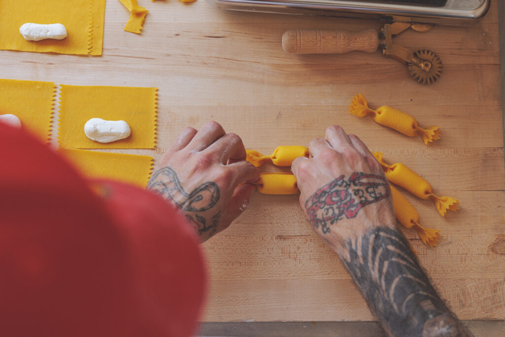 The Pasta Pooks pop-ups become celebrations where pasta is king. “We have a solid process. We always start by creating a close relationship with the chef of the establishment. It is fundamental for us to know their stories, influences and backgrounds. Based on this information, we create a menu in collaboration with them. This is where Ana Maria Vinci comes into play.”