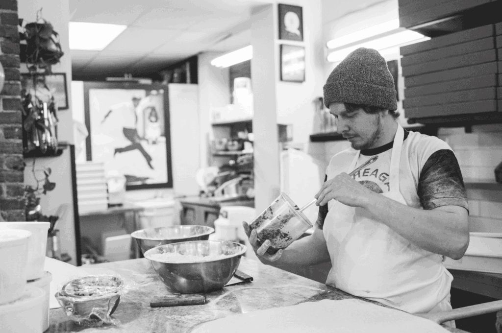 In November 2014, Tony reclaimed the space across from his cafe, Campanelli. How did he get the idea to do a pizzeria there? “We were the Euro-Deli for 12 years, I needed to do a pizzeria,” he says, making his hands talk. So his “old-school boys” literally stepped up to the plate and helped him create ‘Adamo,’ the pizzeria that opened in September 2015 to celebrate the reopening of the Campanelli Shop right across the street at the same time.