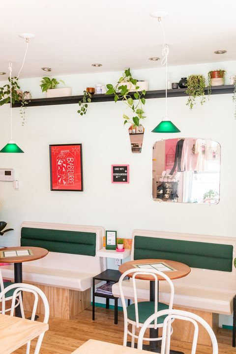 This eco-friendly and economical side is also found in the pretty pastel-coloured decor of the small sunny space, which can accommodate a dozen customers: the chairs come from a bowling alley in Portneuf, the vintage benches from an old McDonald’s. Even the sign, made by Atelier Mockup, was made from scraps. In a nod to Babeurre’s origins, the expression “Salut beau babe!” was also recuperated in the restaurant’s very colourful identity, developed by designer Catherine Lemieux and illustrator Donna Doré.