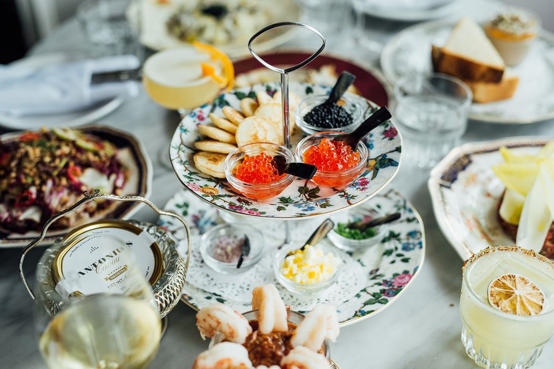 The menu is built around French brasserie classics from the 1970s. Jean-Michel insists on respecting the techniques and traditions behind them. “We don’t reinvent anything at Kabinet. We try to serve what you would have eaten in Paris in 1971, adding some signature micro-elements,” he says. To whet your appetite, the Kabinet menu includes a beef tartare aged for 90 days on site, a potato salad with smoked duck breast and tangy mayonnaise sprinkled with caviar, and a delicious leek vinaigrette served with whelks. Kabinet also offers a tasting of fish roe. You can choose from a wide selection of fish roe—from trout roe to caviar—which is served on a tower with small blinis, crème fraîche, chives and other condiments; it’s up to you to make your own hors d’oeuvres!