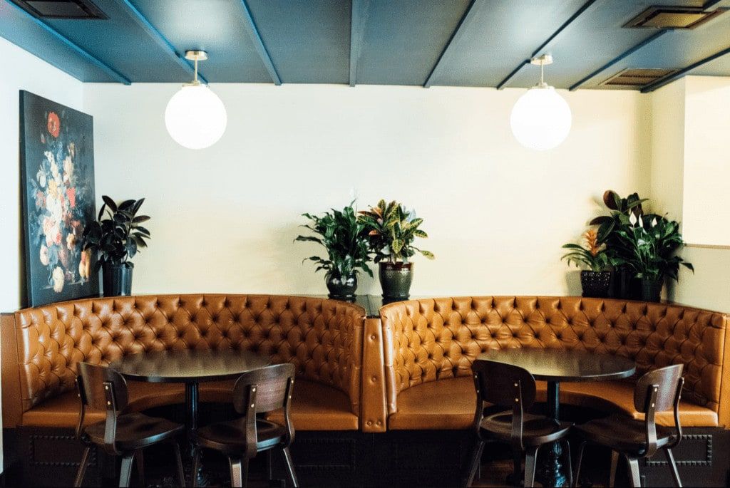 As for the decor, it was Marc-Antoine who put his studies in environmental design to good use. There are solid wood floors, two large bookcases, two brown leather banquettes, a reflective ceiling, a beautiful blue quilted bar and lots of small light bulbs. The 75-seat space is cozy and invites you to come and sit down for a drink. We have to admit that we’re also in love with the bathrooms, which are quite impressive. In the summer, the bar opens onto a large patio on Ste-Catherine Street.