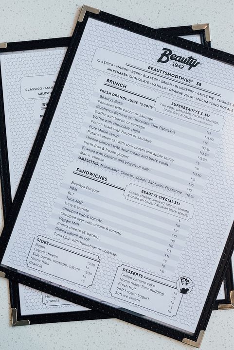 Another reason for the establishment’s success? Since it opened over 70 years ago, the menu at Beautys hasn’t really changed; it serves generous breakfasts and brunches, bagels, smoked salmon and milkshakes of all kinds. Going to Beautys is comforting. You may not be surprised, but you won’t be disappointed, and you’ll certainly be satisfied.