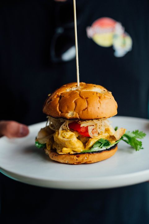 Pablo drew inspiration from her cuisine to create the menu, which revolves around spices, yuca fries, lime, and aji verde, a traditional spicy Peruvian green sauce. The central ingredient here is chicken, which is proudly featured in the restaurant’s logo and grilled over charcoal in the kitchen. “We always ate pollo a la brasa when we went out as a family, with a 2-liter bottle of Inca Cola on the table, and everyone shared everything,” says Pablo. Bertha’s dishes (ranging from a quarter thigh to a whole chicken) are accompanied by yuca fries and coleslaw.