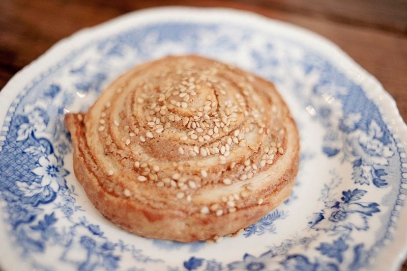 The charming cafe on Rachel Street offers classic coffees – espresso, latte, cappuccino, etc. from 49th Parralel – teas and juices. However, people come here mainly for the Turkish specialties and the regular or mastic Turkish coffee. Réplika also offers a short menu of small bakery items including cornbread, tahini rolls and more. The cafe makes almost everything ‘in-house’, from their bagels and sauces to their pastries – “we tried making our own soy milk, but in the end we still preferred industrial” (laughs). The cafe offers a small but varied menu including several options of scrambled eggs, homemade granola, salads, böreks (a stuffed pastry made with filo) soup of the day, sandwiches on simits (homemade bagels), grilled cheese, and a halloumi sandwich. We have a weakness for the tahini cookies, the borëks and the simit sandwiches. The ingredients used are of good quality and the result is simple and tasty.