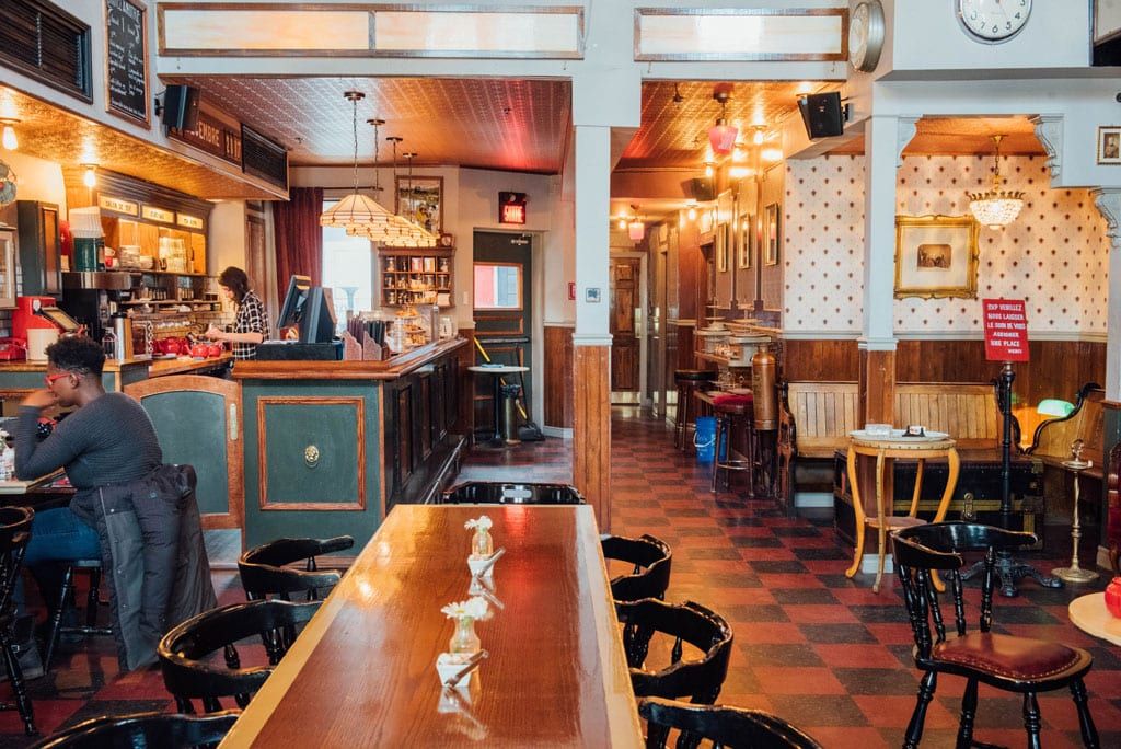 The decor in this elegant room was designed by co-owner Murad Meshgini (Sparrow and Tea Room), his wife Reema (Cocoa Locale), three of their friends and the other co-owner Stephen Kamp. Together, they have created a space that transports you back to another time; the small piano, the massive chandelier, wallpaper and old books were all collected over a period of more than 5 years, with the idea of finding objects that would reflect the magic of the 1920’s decorative arts era. « We also wanted elements of an old English library. It’s a bit eclectic but it works quite well. If you are wondering about your tea and where the exceptional china comes from – the cups and saucers, plates and spoons are antiques that Murad found during his ongoing search at antique dealers, flea markets and garage sales. Sometimes there are treasures to be found. »