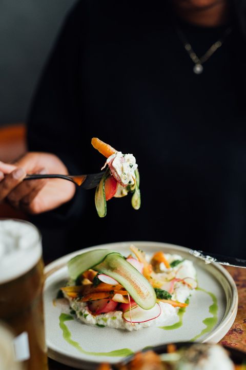 In the kitchen, Nicolas Geoffray has created a simple but pleasing menu of light dishes designed to accompany Dieu du Ciel’s satisfying pints. “We opted for fairly small portions to allow people to try several dishes and beers and stretch out the evening with us,” Nicolas explains.