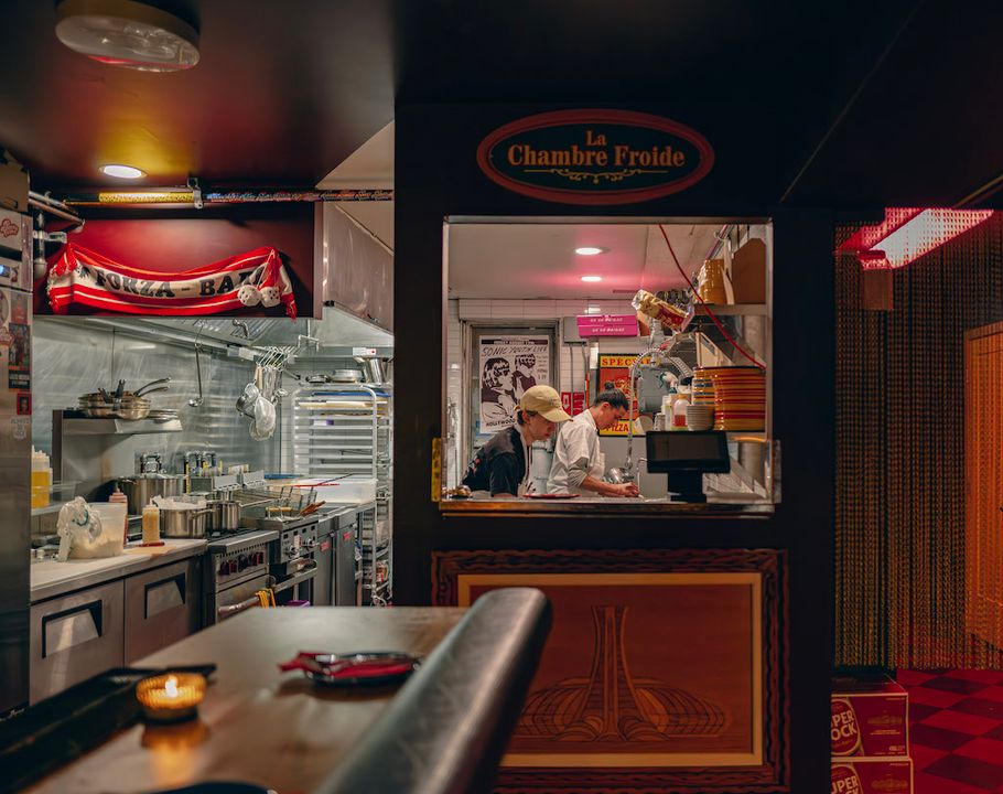 Behind the popular establishment is influencer Victor Petrenko – aka “Coach Vic“, known from Pasta Pooks and a stint at Gia – and talented celebrity chef Danny Smiles (ex-Bremner and now chef at Willow Inn), backed by the group A5 Hospitality (Suwu, Apt 200, École Privée, and more). The young men wanted to open a dive bar in the Mile End and partnered to create a space where they would like to spend time together and welcome customers and friends. The result: a discreet but trendy space where you’ll find a lot of cool kids coming to have dinner, watch a game, have a drink, or party.