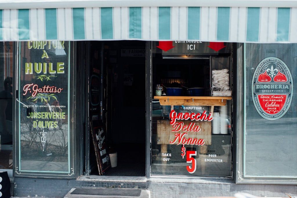 The name, the cuisine, the decor, and the atmosphere of the Drogheria Fine transport you to an old-fashioned European delicatessen. A small window, working as a counter, overlooks Fairmount Avenue West. Behind it, a member of the Gattuso family is busy managing pans overflowing with fluffy gnocchi smothered in tomato sauce à la Nonna. To this, they add Parmesan cheese and/or chili flakes, as desired. Everyone leaves with their generous portion of gnocchi; a balm for the heart… and the stomach.