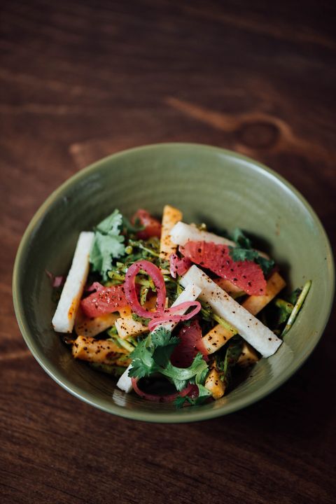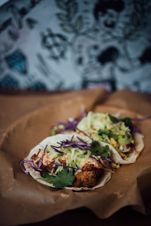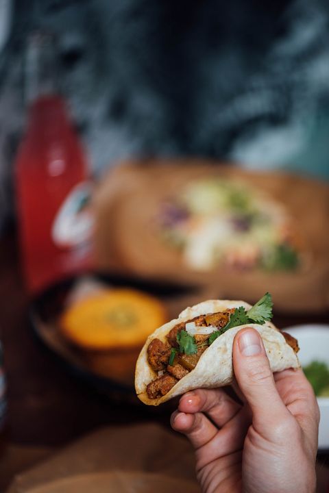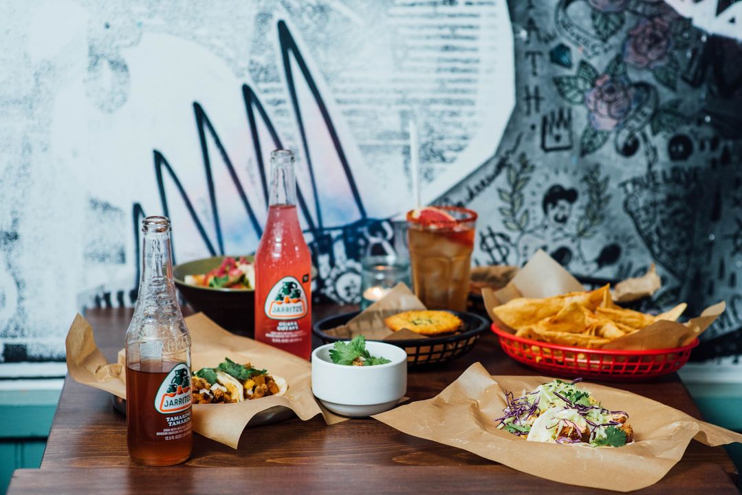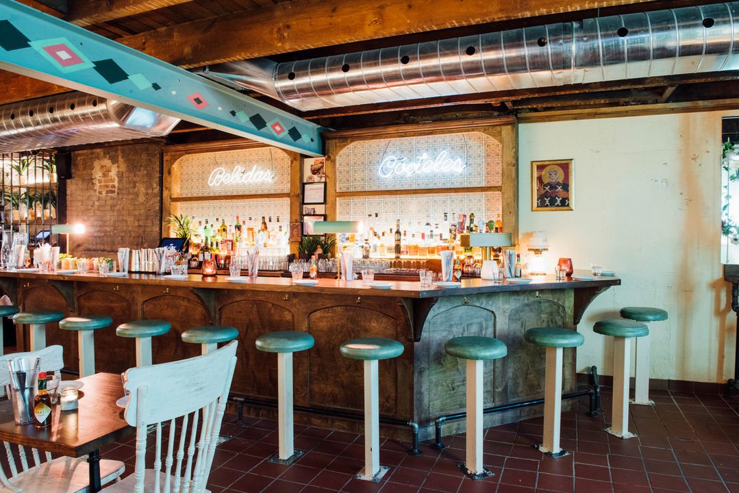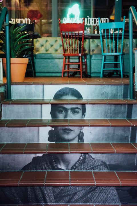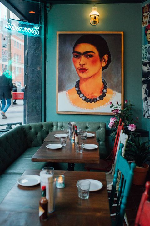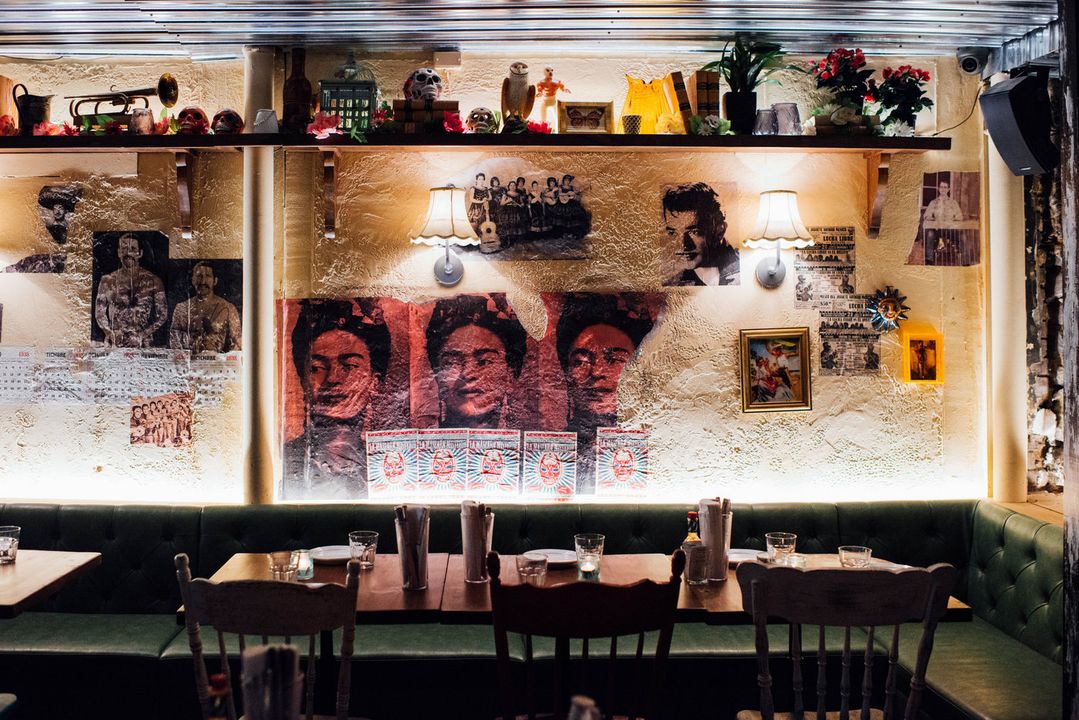 Upon stepping inside, you feel like you’ve been transported elsewhere. Like their other addresses, Escondite Drummond is characterized by its mismatched decor; the walls are covered with exotic motifs, Frida Khalo posters, and colourful neon lights. With intentionally distressed old wooden chairs, everything in the space comes together with the desired effect: to transport us for the duration of a meal to a very festive and colourful Mexico.