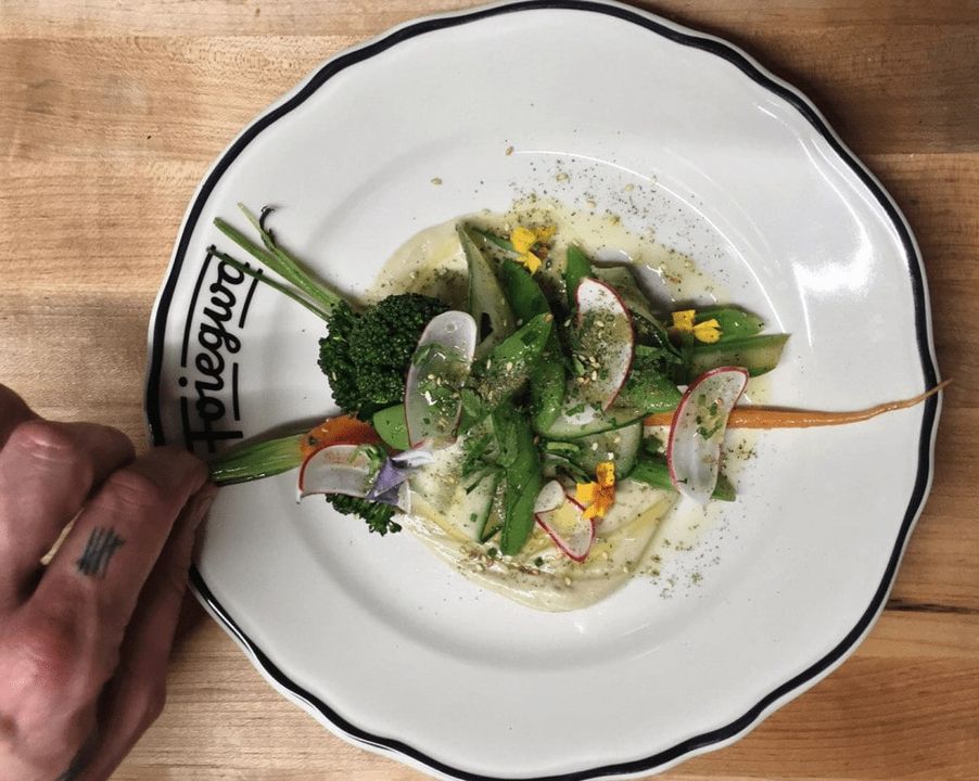 The name comes from an anecdote from the owners. They were invited to an event in Las Vegas a few years ago to do a pop-up during the Life is Beautiful festival. Foie gras was banned in California and throughout the evening, customers kept saying “Oh my god, it’s so good! Foie gwa! So good!” And from then on it became a running gag. The owners started using the word as a hashtag on Instagram, and a buzz was created. Hats, jackets, and t-shirts came in, and then Foiegwa Restaurant was born.