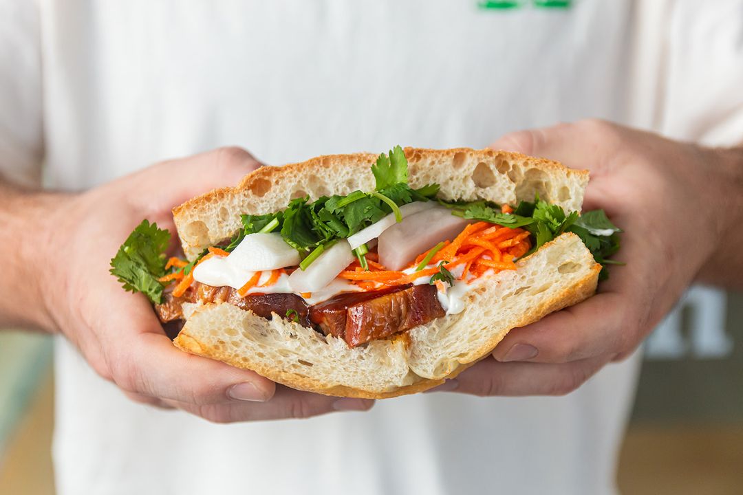 If you’ve never tasted a Franky Johnny sandwich, let us tempt you: generous, house-made fillings served on a choice of focaccia or baguette (from Borderon & fils, of course), all dripping with homemade sauces. The pork belly banh mi is a guaranteed hit, featuring two hefty slices of 48-hour confit Quebec pork belly, homemade mayo and BBQ sauce, pickled carrots and daikon, and cilantro—a burst of bold flavors in every bite. For vegetarians, there’s a tofu version with sunflower mayo and cilantro on the menu as well. Another must-try is the “Gros Mac,” inspired by the famous sandwich from the golden arches.