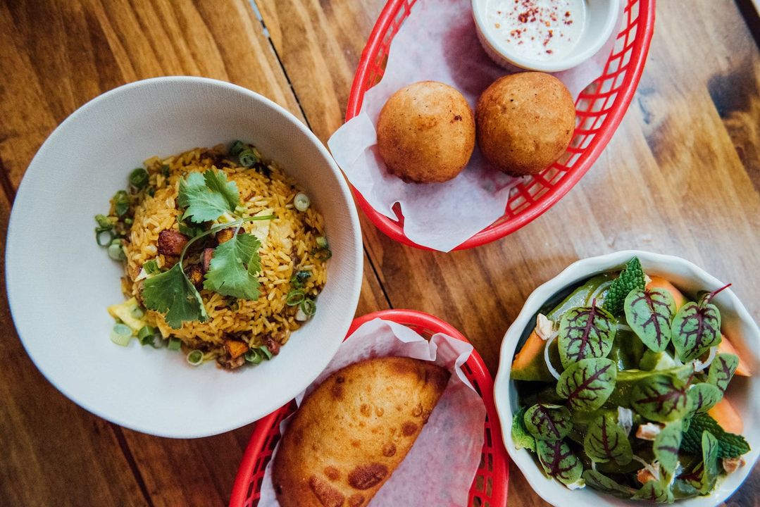 The first thing that creates this feeling has to be the decor. All the vibrant colors reminiscent of Cuba are in place, plus a wall full of vintage photos, the painted words « Seamos realistas y hagamos lo impossible » (Let’s be realistic and do the impossible), a hanging guitar painted over with a Cuban flag, plus other memorabilia. A few mismatched ceiling lamps and plants hanging in small pots on another wall, are other details that add to the Cuban charm. It may be a small space but the welcome is warm, there a sense of energy, and it lifts the spirits. « And maybe pink flamingo are more Miami, but the Cuban community is hugely important in Miami, so we also took inspiration from that. » The tables are fairly close together, with some great turquoise banquette seating, and everyone chats with each other in these casual surroundings.