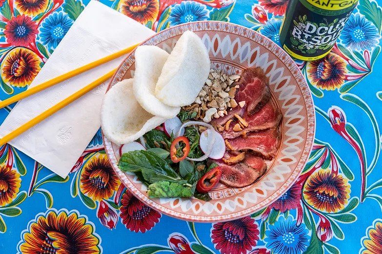 La Belle Tonki’s menu is surprising. Michel Nguyen is of Vietnamese origin, while his partner Boombeast is Cambodian. This combination, sprinkled with Montreal culture, results in an out-of-this-world menu: kimcheesy poutine (which won La Poutine Week 2021), Cheesy ramen, Burger bành mì, Phở Flintstone (a tonki with short rib!!!) and more.