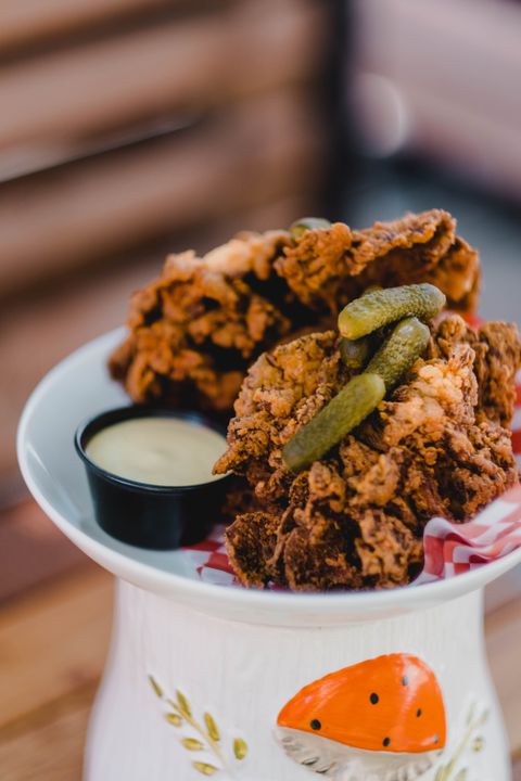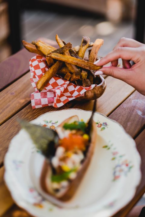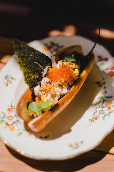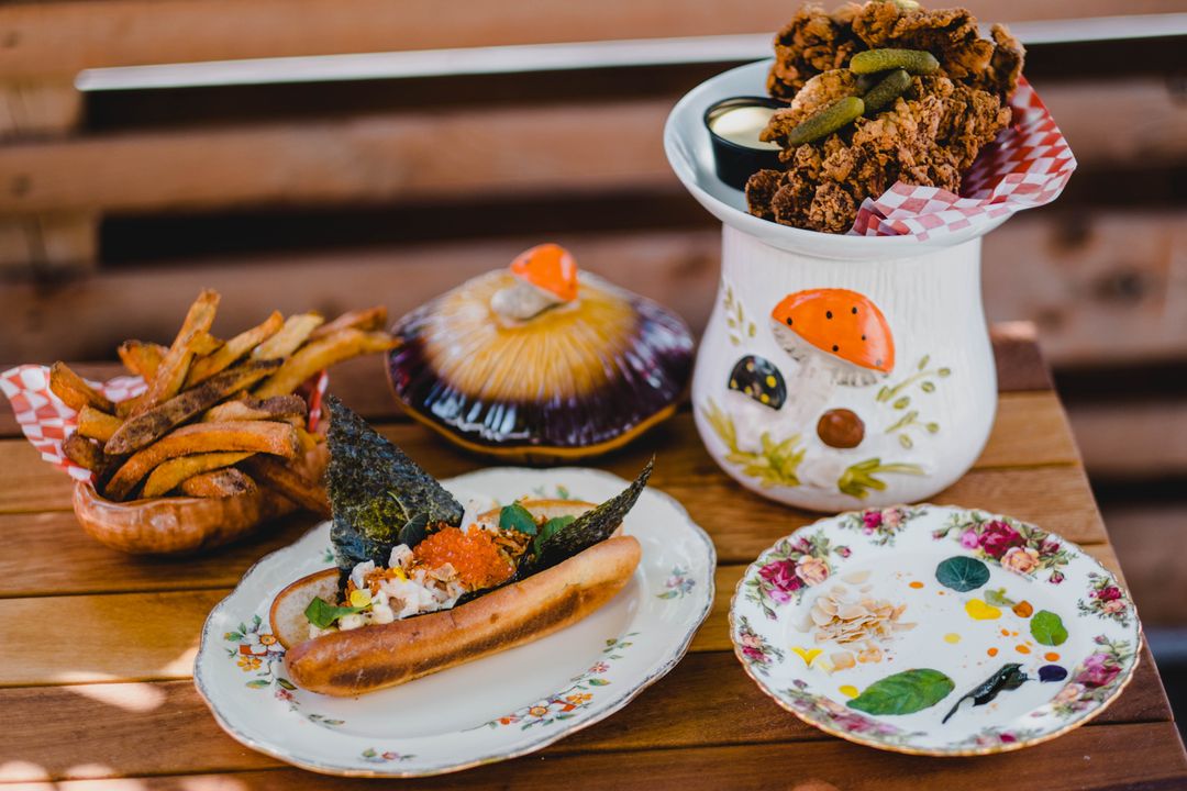 In the kitchen is chef Nicholas Marchand (who was the chef at the St-Urbain for eight years, and worked at the Pied de Cochon sugar shack). With the help of his sous-chef Andréa Laliberté, their daily menu evolves according to arrivals and current inspiration. At lunchtime, they offer a delicious menu of revisited classics: shrimp rolls with an Asian twist, the Colonel’s oyster mushrooms (fried chicken style) or ajo blanco soup, to name a few.