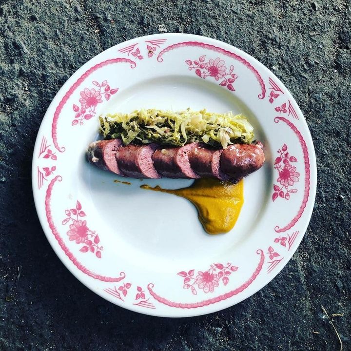 After entering into Le Cendrillon, your eyes are immediately drawn to a neon light of a pink pig with the words BBQ that is mounted on one of the walls of exposed red bricks. It dominates the bar area which has a bright shiny red countertop, surrounded by stools. Along another wall is some bench seating with hightop tables and more stools. The different styles of stools are pretty funky. This is a long space that through the ambient hues from the hanging gold pendant lighting, seems to give off a mystical energy. Behind this interior design is Alain Dumont, of Dumont Designer Conseil, whose talents were also used in the design of La Planque, nevertheless Carl Dumas adds that the whole team contributed their ideas as well. Le Cendrillon can seat over 50 food & drink lovers, a number that can expand to over 63 for groups. And during the summer terrace months, another outdoor 18 places are there for everyone to enjoy the warm temps!