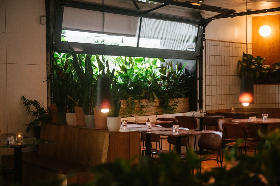 The set was designed by Daniel Finkelstein (of the firm Finkel), also a partner in the adventure. Although he had to work with the means at hand (because of the pandemic), the result is both inviting and functional: the vast room that can accommodate 250 people is divided into several smaller, more intimate enclaves. Bathed in daylight thanks to two large garage doors that open onto the street, the space dims in the evening as the bar fills up and the decibel level increases.