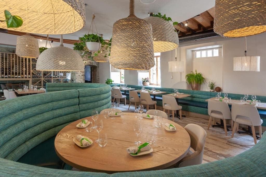 Stéphanie Bélanger of Rebel design in l’Assomption understood the essence of the bistro L’Orygine very well. With turquoise accents and straw shades, she transformed a dark location into a light and bright space inspired by the seaside. The elegance of the room and the beautiful greenery create an organic and colourful atmosphere, matching what’s on the plates! In addition to accommodating 90 people inside, they also have one of the most beautiful patios in Quebec City, where they welcome as many diners.