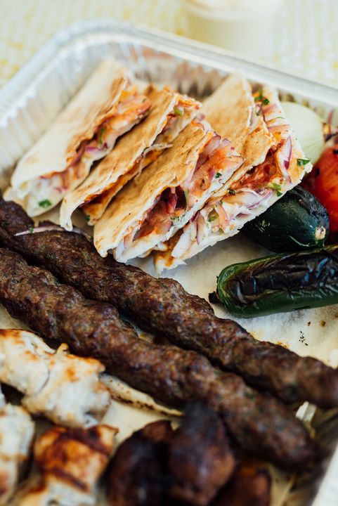 Their manakish—a kind of Lebanese flatbread pizza that is eaten folded or rolled—are also menu staples. We highly recommend the half and half with cheese and za’atar topped with tomato, cucumber, mint, and olives (for an extra $1.50).