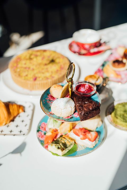 Beyond the tea services, an à la carte menu is available to satisfy small cravings or hearty appetites. The house specialty? A flatbread-style homemade pizza. Our favorite is the one inspired by shakshouka, topped with peppers, tomatoes, and a soft egg—simply irresistible. You’ll also find meal-size salads, sandwiches, house-made frittatas, and an array of sweet offerings: pastries, cookies, bundt cakes, amaretti, and not to forget the famed halva—a vegan cake made with tahini, caramel, and pistachios. Every dish is homemade with love, and it shows. For Hadil, quality is non-negotiable: “If I wouldn’t serve it to my children, it won’t be served here.”