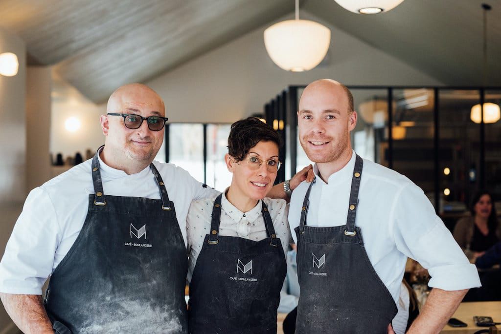 Upon entering, you are greeted with a counter filled with beautiful and enticing breads, pastries, baked goods, and coffees to take-out. To the left is a large open, glassed-in kitchen that offers space for everyone, bakers and cooks alike. The 50-seat dining room breathes with an abundance of natural light. In the evening, the house will offer the possibility of reserving the chefs’ table, a table for ten, directly in the Merci la Vie kitchen and offering a privileged view of the cooks’ waltz! For the summer season, Johanne and Albert are also preparing a magnificent outdoor terrace.