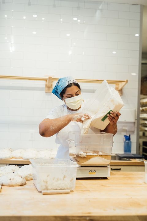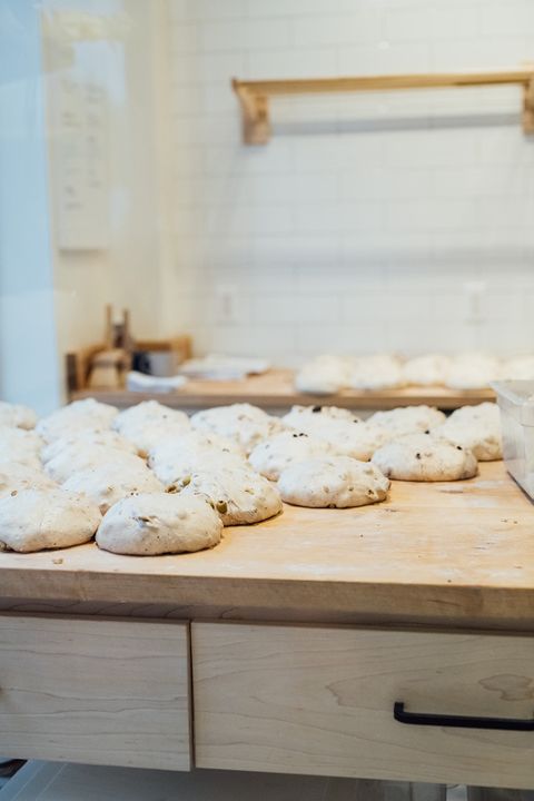 The house offers several variations of sourdough: plain, cinnamon raisin, olive and walnut, khorasan, sesame and whole wheat, marbled rye, and sprouted buckwheat.