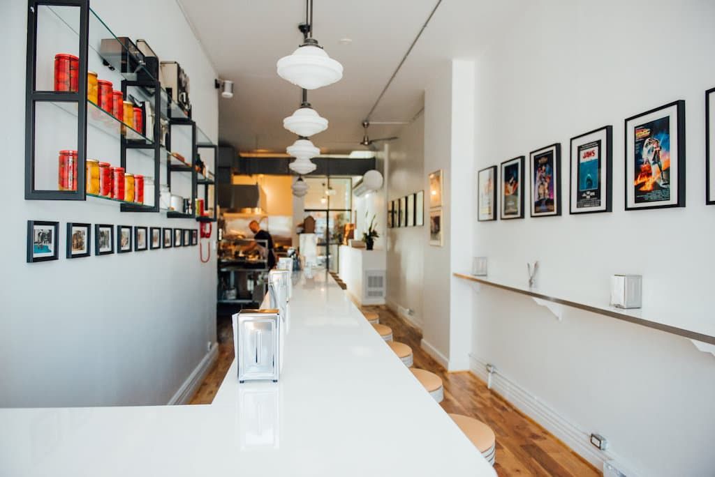 The long space is awash in beautiful natural light. Conceived by MJ and her designer friend Gen Raynauld, the stylish diner is understated and classic. The space seats 18, with another seven on the small terrace. The address is adorned with carefully chosen posters—which the cinephiles among us will recognize—as well as family photos hanging behind the bar.