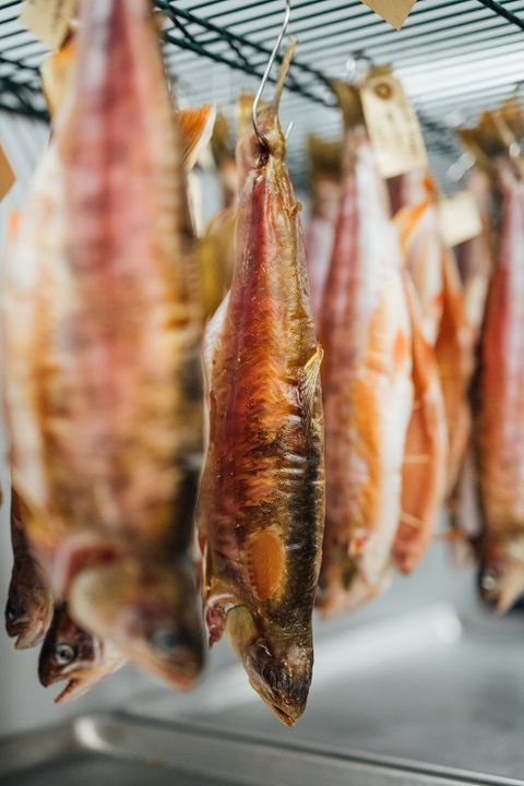Indeed, Palomar, a hybrid fish and seafood shop and restaurant, newly opened on the edge of the Jean-Talon market between La Fromagerie Hamel and Juliette & Chocolat, dry-ages much of its fish and seafood. We’re all familiar with this technique, used by butchers and restaurateurs to age and improve some of their meats, but dry-aging fish and seafood is still quite rare.
