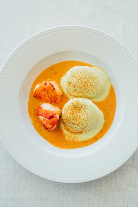 The oeuf mayonnaise, served with two beautiful pieces of poached lobster, creamy lobster juice, and tarragon mayonnaise, is already a classic and will undoubtedly remain on the menu. The egg is boiled for precisely eight minutes and twenty seconds (“Not a second more, not a second less!” emphasizes the chef), as the consecrated recipe dictates, resulting in a slightly congealed but still shiny yolk. The “MTL style” trout, brined and torched and served over horseradish sauce, dill oil, and topped with an everything bagel-style garnish (toasted sesame seed, roasted garlic, pine nuts), is also likely to stay – much welcome news, as this was the highlight of our meal. The raw beef with warm jus de volaille, paper-thin champignon de Paris slivers, sunchoke chips, and a small mountain of grated Louis d’Or, was a rather fun twist on the classic beef tartare.