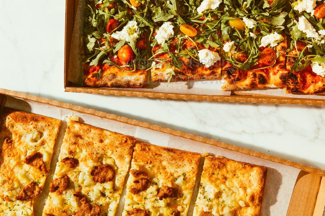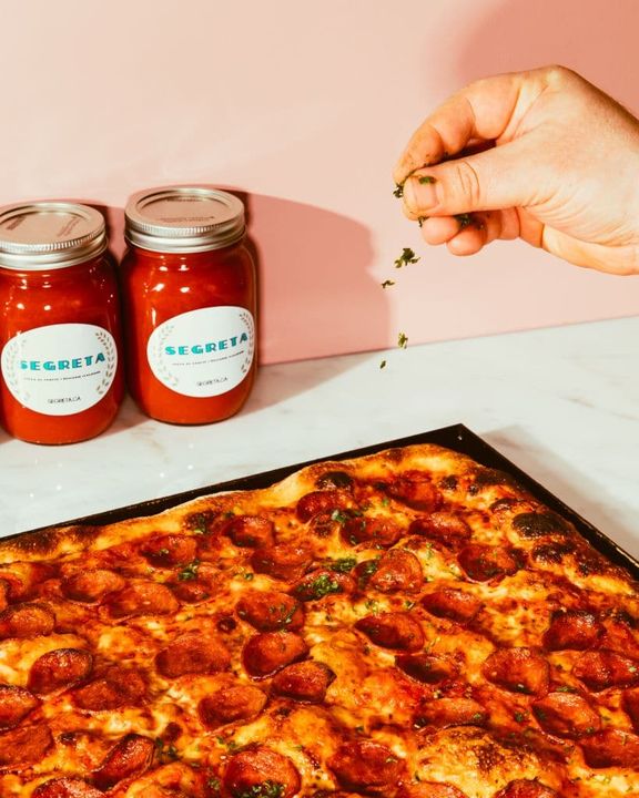 The word segreta means “secret” in Italian, and its meaning becomes clear when we talk about the pizza dough here. It is one of the many distinctive features of Segreta Al Taglio. The Al Taglio pizza is a Roman pizza baked in traditional rectangular wrought iron molds, whose dough is cold fermented for a period of 72 to 96 hours. The result is divine and worth the time that Richi Ourichian, pizzaiolo and owner of Segreta, spends on each of his pizzas. It’s a technique he learned from Massimiliano Saieva, and it’s paying off today. He started at home during the lockdown to please his family and friends, but soon realized that he had more orders than he had room for in his fridge.