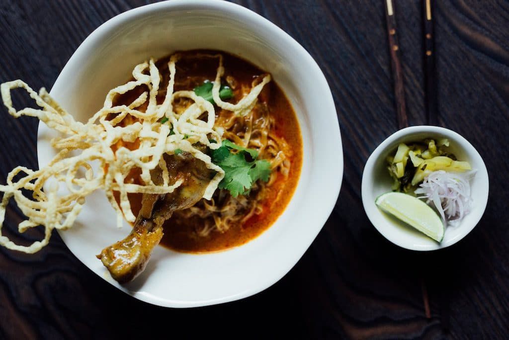 His path crossed with Thailand once again after he met his future girlfriend, originally from the north of the country. It was during two trips to the land of smiles that the Thammada project took shape. The concept is simple: to offer Montrealers a Thai cuisine to share with authentic flavours. On the plate, the chef strives to present Thailand in its raw state: pad thaï with shrimps sautéed in shrimp oil, satay gai (chicken brochettes), and red curry. The showstopper of our meal was the Khao soi; a signature dish of the rich gastronomic culture of northern Thailand that is rarely found on menus in Montreal. Chitakone travelled to the beautiful Chiang Mai region to find the ingredients to make this creamy dish; one in which boiled and fried noodles are mixed with a curry and coconut milk broth.