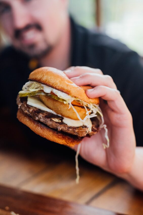Quoi de mieux que de s’arrêter dans cette cantine-charcuterie de troisième génération pour un casse-croûte fait avec cœur et savoir-faire. Alexandre, boucher-charcutier bien connu dans le coin, signe des charcuteries maison au comptoir et un menu réconfortant qui coche toutes les envies d’automne : frites chaudes, poutines généreuses, bières de micro en appui et, surtout, le burger du boucher (bacon, oignons, cornichons, fromage et sauce BBQ maison) devenu petit rite de passage. On partage un plateau de charcuteries avant de reprendre la Route des Navigateurs, le sourire plein la bouche.