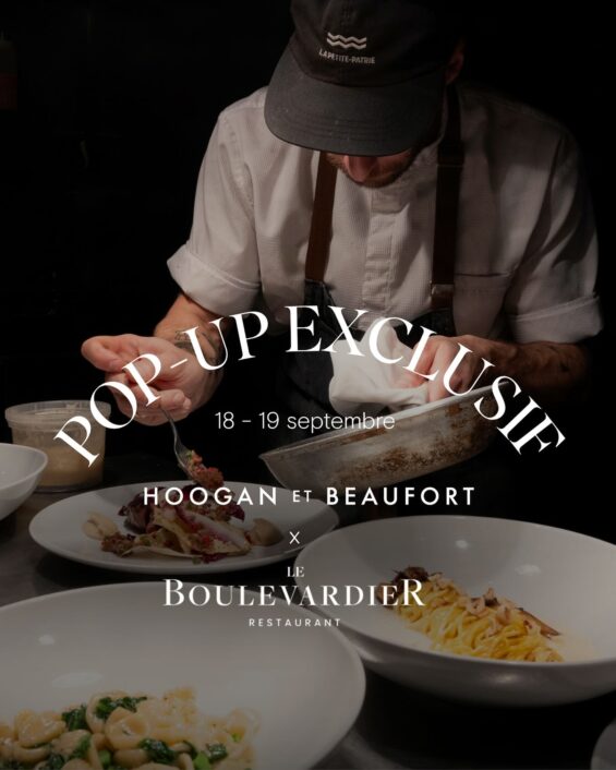 Les 18 et 19 septembre, Le Boulevardier accueille Hoogan et Beaufort qui préparera une soirée gastronomique avec un menu en cinq services. Ce pop-up exclusif a pour but est de faire découvrir en primeur le nouveau menu de Hoogan et Beaufort avant la réouverture du restaurant (actuellement en rénovation depuis quelques mois).