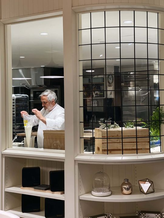 Plus loin, la boulangerie étale ses fougasses, miches et baguettes fraîches; la charcuterie et la fromagerie, le savoir-faire d’ici et d’ailleurs. De quoi ramasser tout le nécessaire pour l’apéro – et même l’apéro lui-même (bières et cidres d’ici sont offerts). Enfin, à l’heure du lunch, les pizzas qui sortent du four ravissent les personnes attablées qui ont vue sur le Lab, grande pièce vitrée où le sympathique chef et ses comparses travaillent de leurs mains magiciennes pâte à chou ou feuilletée, meringues, mousses et gelées.
